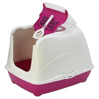 שירותים סגורים לחתול עם פתח עליון + כף + פילטר – איכותיים ומאפשריים גישה נוחה לטיפול בארגז, מבית מודרנה הבלגית.
